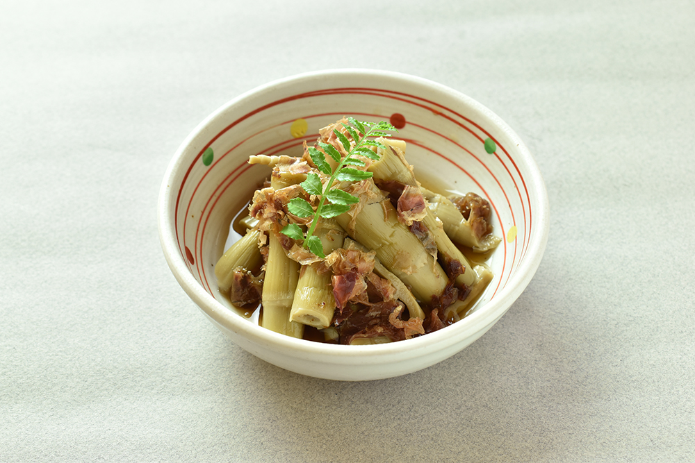 宗田節の出汁でたっぷり煮付けた「四方竹の煮付け」をご堪能ください♪