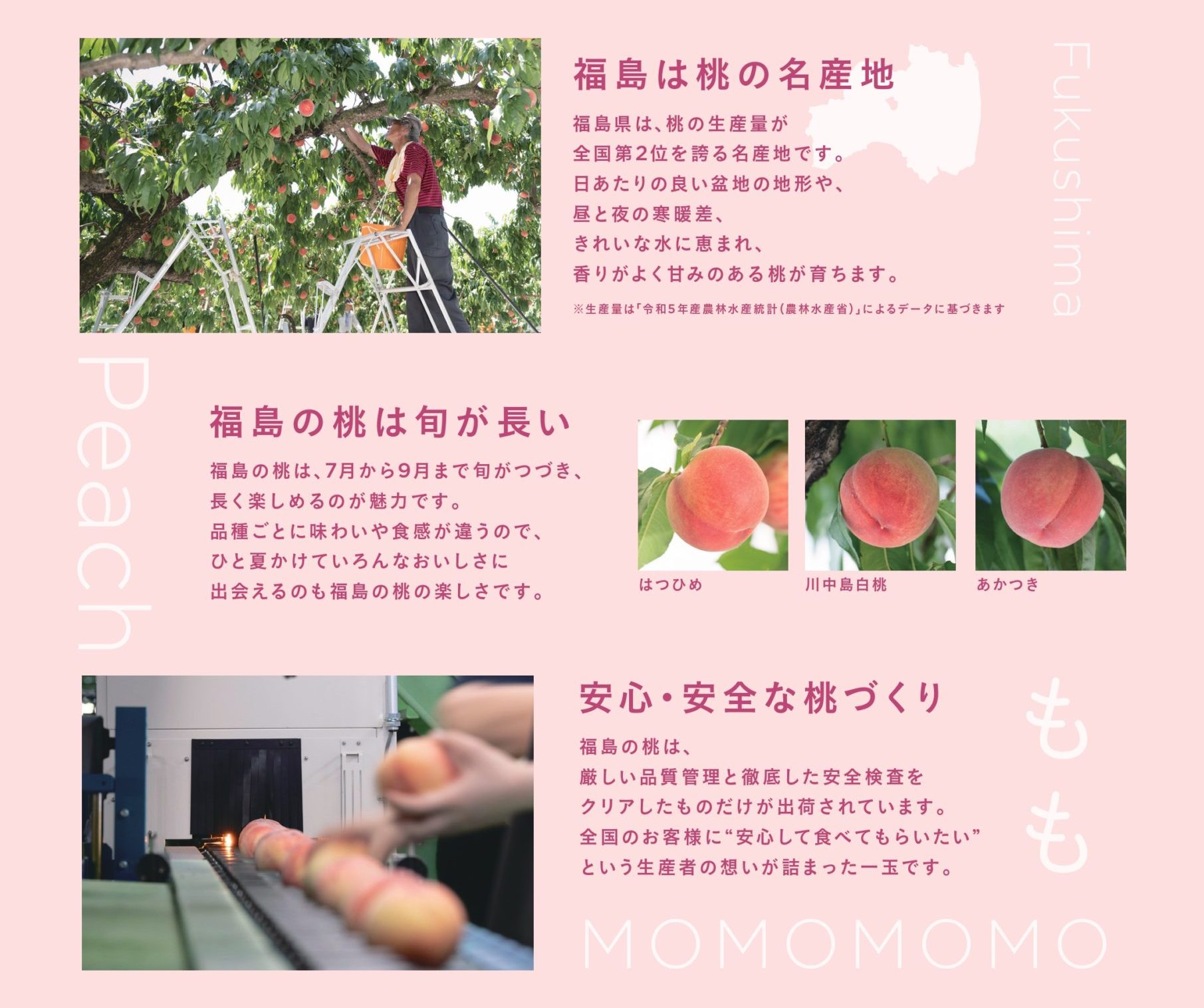 昼夜の寒暖差や清らかな水に恵まれた環境で育った桃は、香り高くジューシーな甘みが特長です。