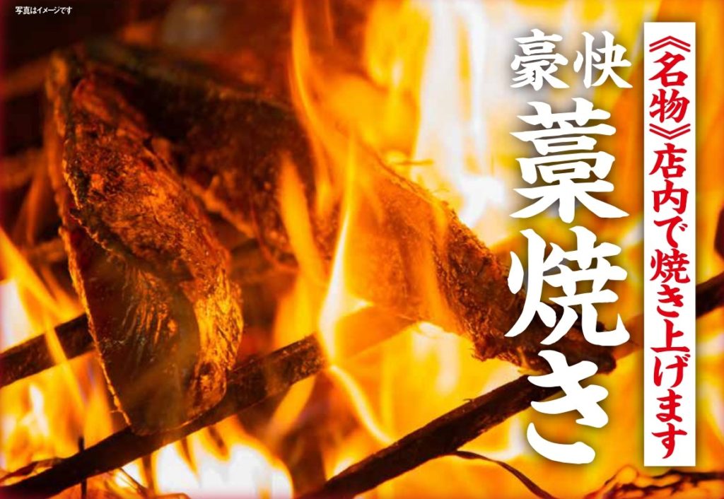 かねいわ水産さんが選ぶ、旬の地魚を店内にて藁で焼き上げます。