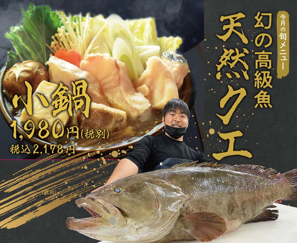 また、宴会用の「クエ鍋コース」もご用意しておりますので、新年会にもぜひご活用ください!