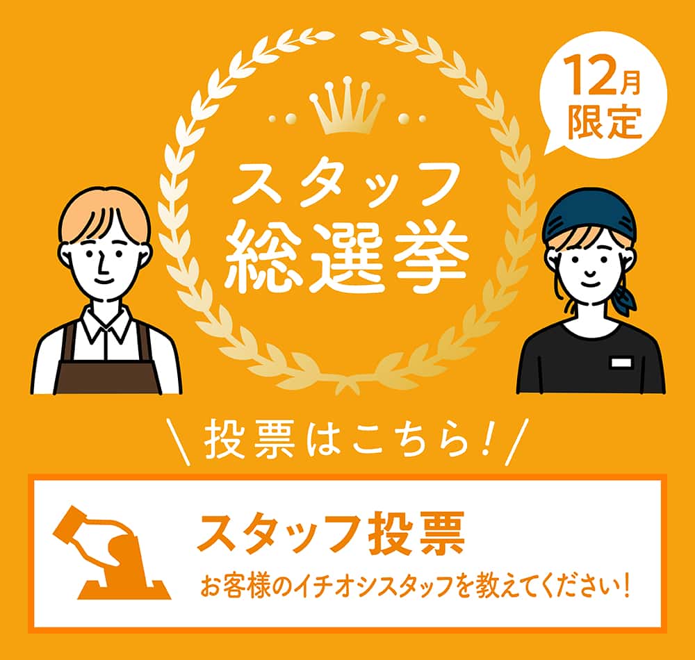 ※原則として来店中の投票(1来店1投票)とさせていただいています。来店無く投票されたことが判明した場合修正対象外となります。あらかじめご了承ください。