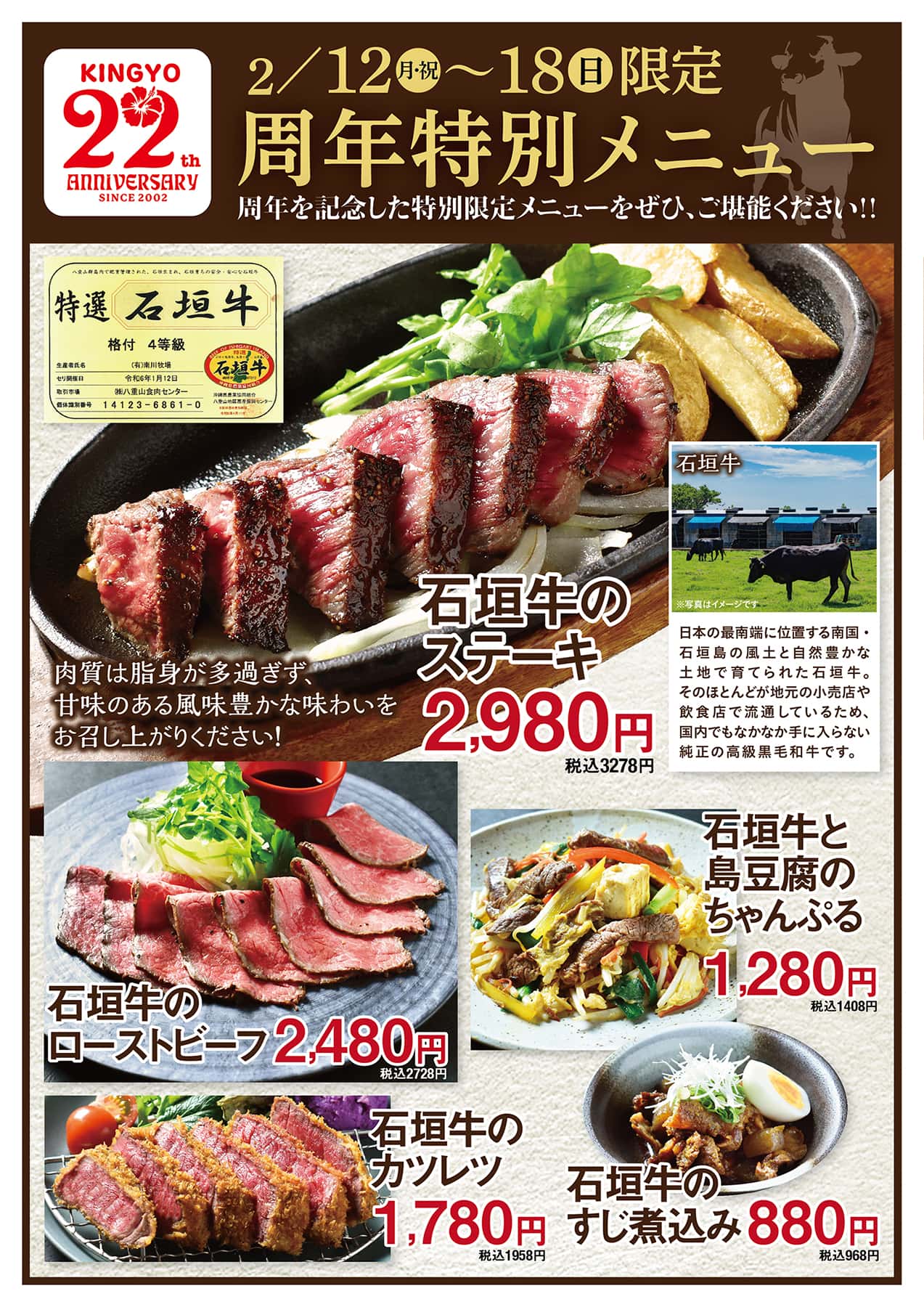 ★販売終了★【2/12~18】絶品!「石垣牛」の周年特別メニュー