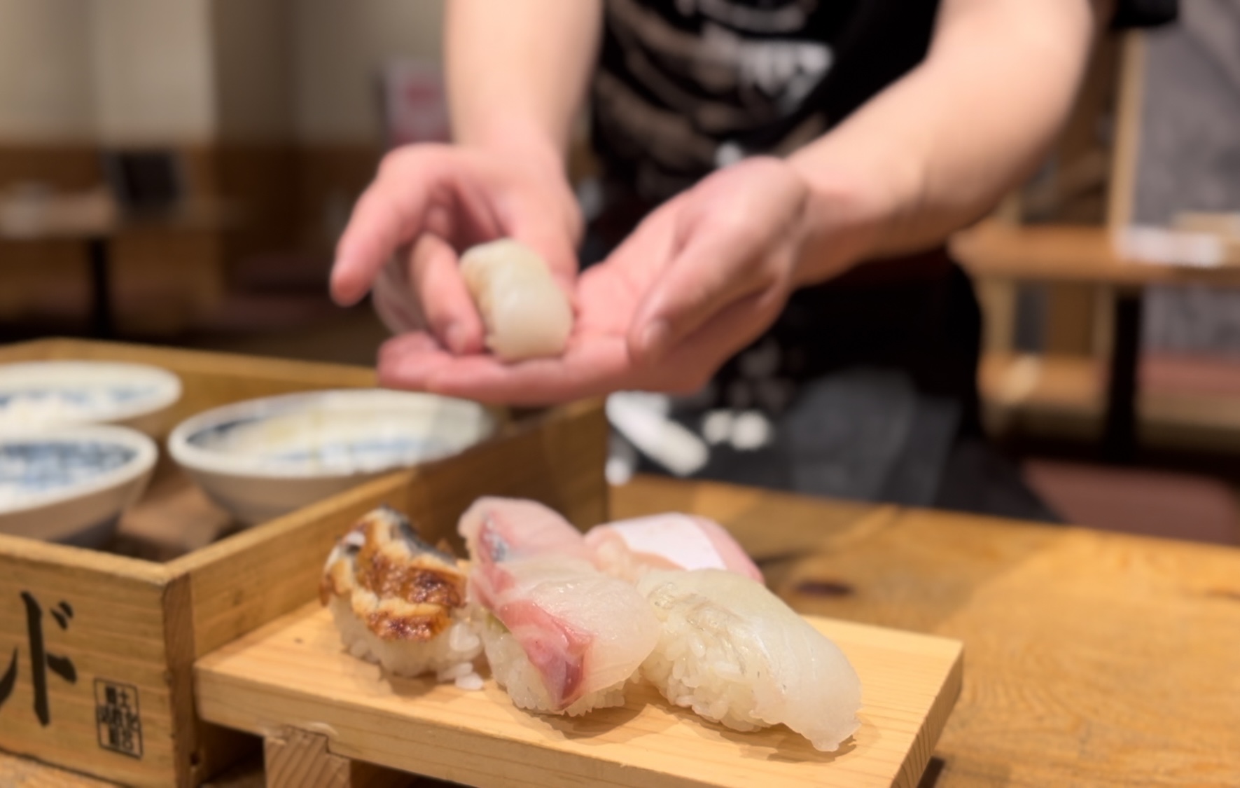 生けすセンターの商品開発部長がその場で握り、お寿司を振る舞います!