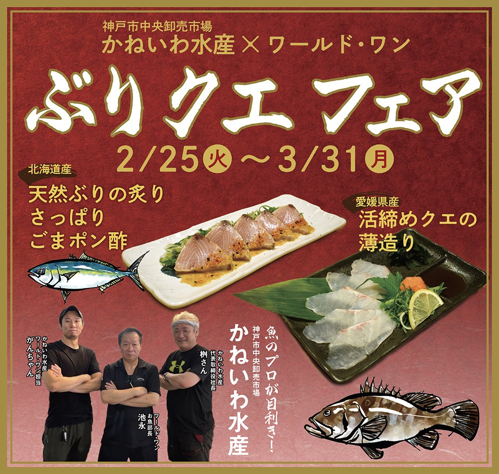 魚が自慢の神戸4店舗限定で「ぶりクエフェア」を開催します!