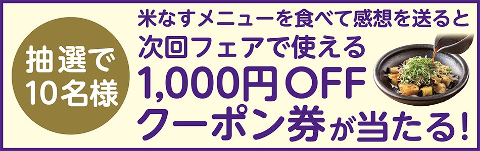 米なすメニューをご注文のうえ、アプリから感想を送るだけ◎