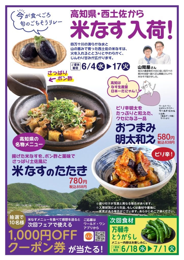 【6月4日~】旬食材フェア!高知県西土佐「米なす」
