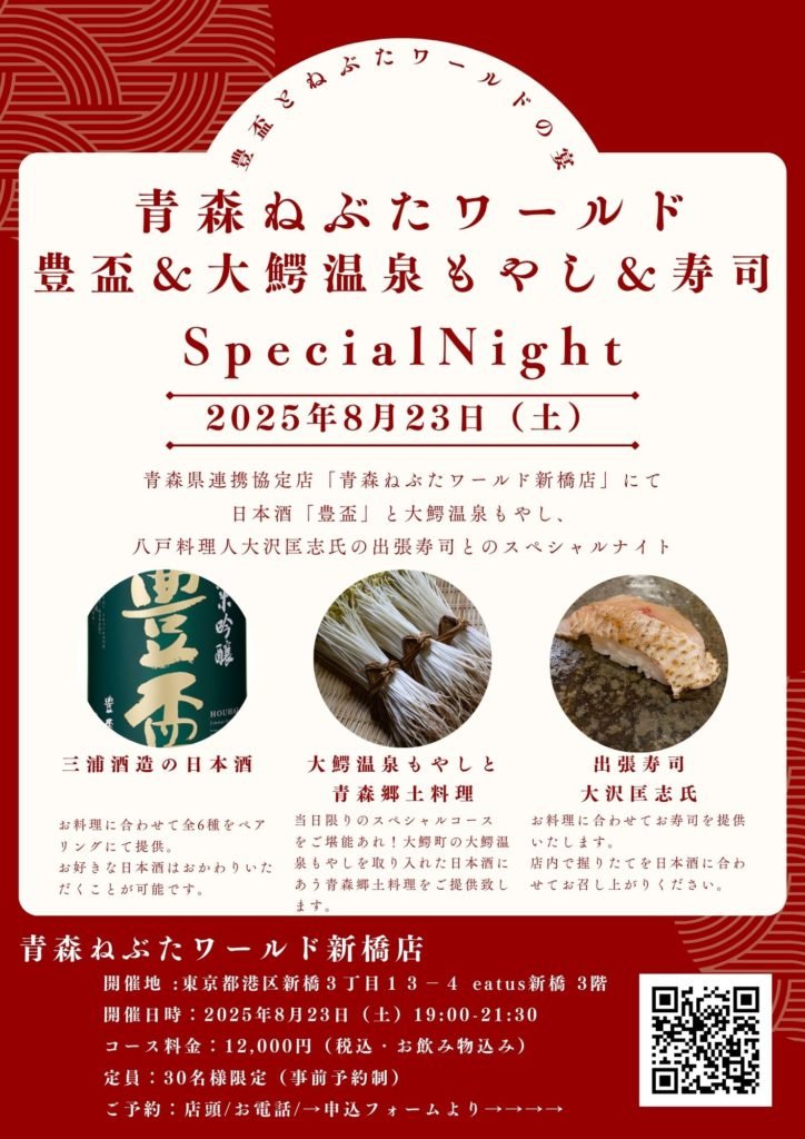 【新橋】出張寿司イベント開催!★青森の極上寿司×豊盃 × 大鰐温泉もやし