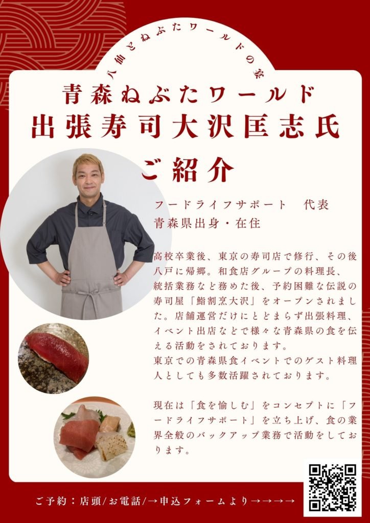 今回の目玉は、青森・八戸(はちのへ)の予約困難な名店「鮨割烹 大沢」を営む大沢匡志氏の出張寿司。