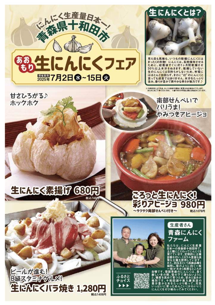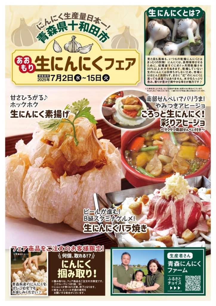 青森県産のにんにくをぜひご自宅でもお楽しみください♪