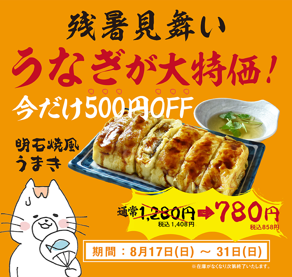 残暑見舞い大特価!!!今だけ「明石焼風うまき」が500円OFF★ ※なくなり次第終了