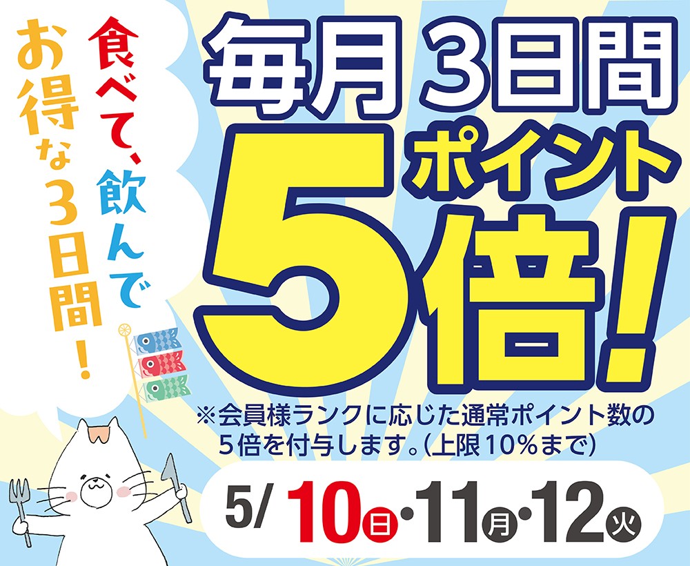 【ポイント5倍】毎月3日間限定!おトクなポイントサービスデーを開催!
