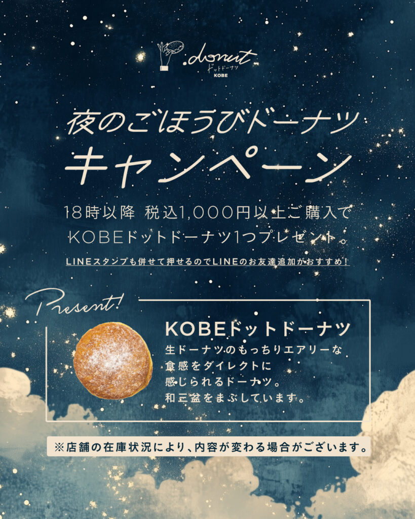 「KOBEドットドーナツ」を1つプレゼントいたします。