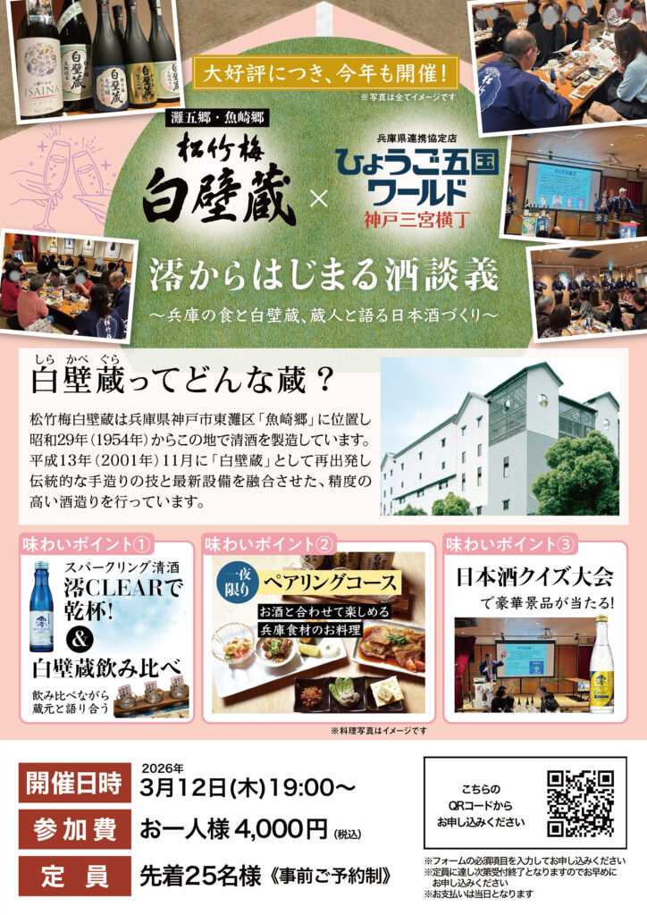 【3/12(木)開催!】澪からはじまる酒談義〜兵庫の食と白壁蔵、蔵人と語る日本酒づくり〜inひょうご五国ワールド神戸三宮横丁