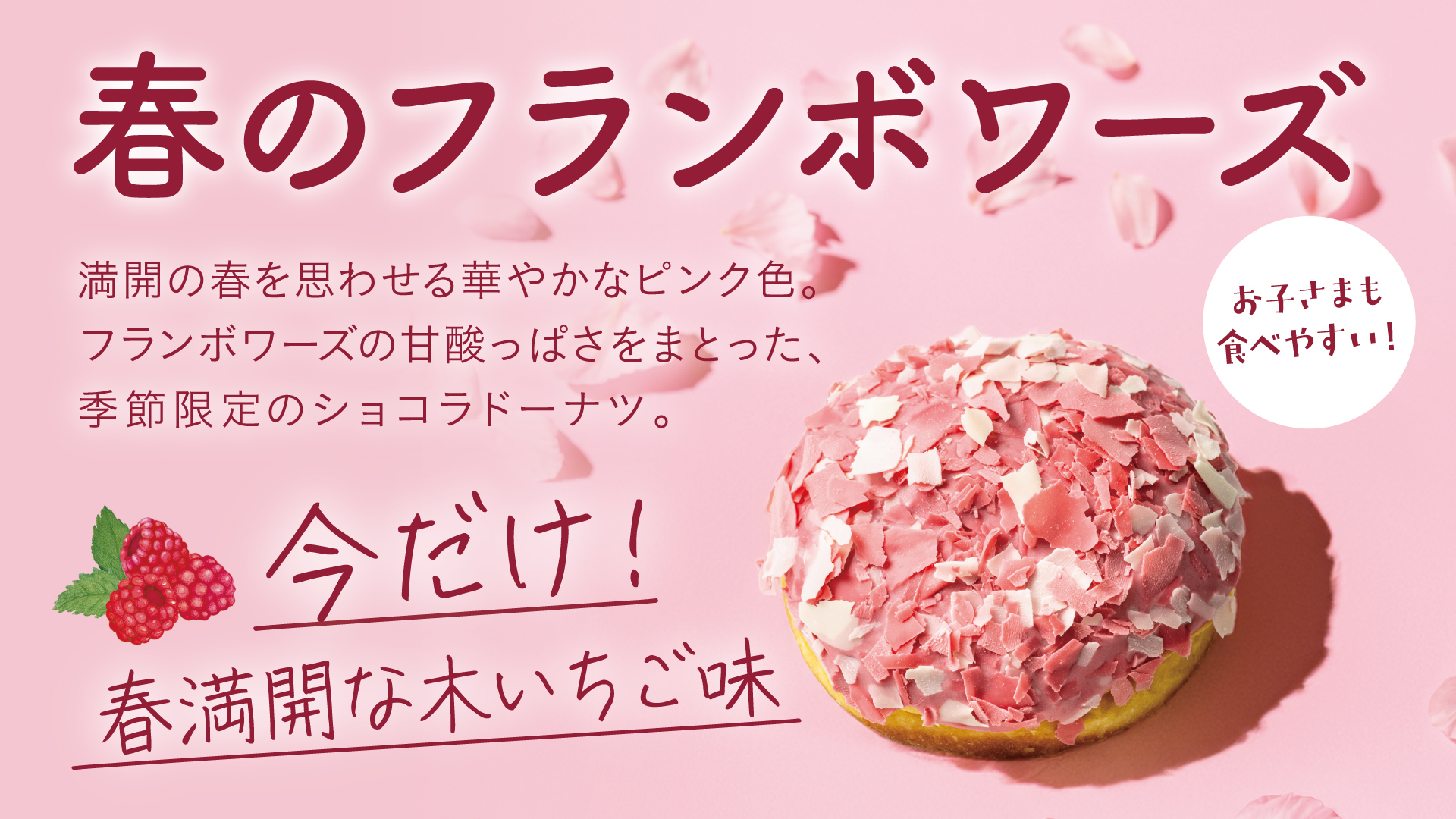 木いちごのショコラコーティングに、さくらのようなチョコレートをまぶした、『春のフランボワーズ』 が期間限定で登場。
