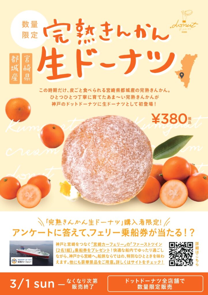 TOP > プレスリリース > 神戸発ドーナツブランド「.donut」にて宮崎県都城産『完熟きんかん生ドーナツ』を数量限定で発売!
