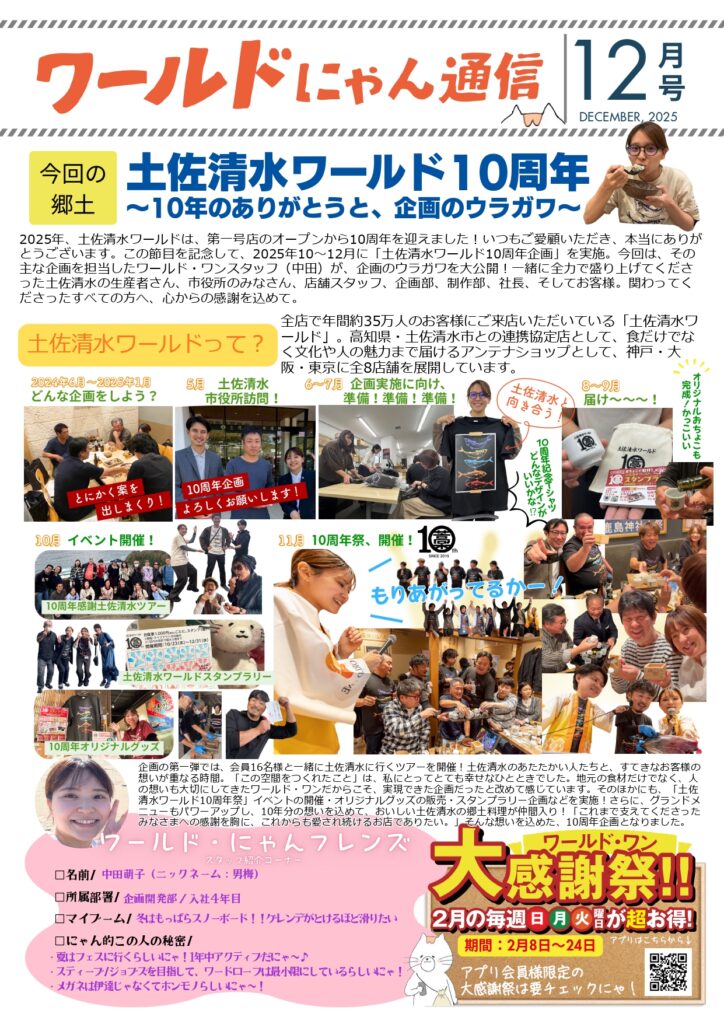 食・人・まちの魅力をお届けするニュースレター「ワールドにゃん通信」。
